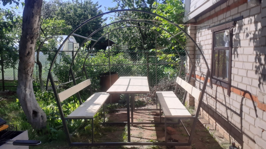Стол, лавки - доска строганая .