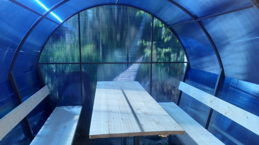 Конструкция модульная сборно-разборная. На участке осуществляется узловая сборка, что очень удобно. Установить можно в любом месте.